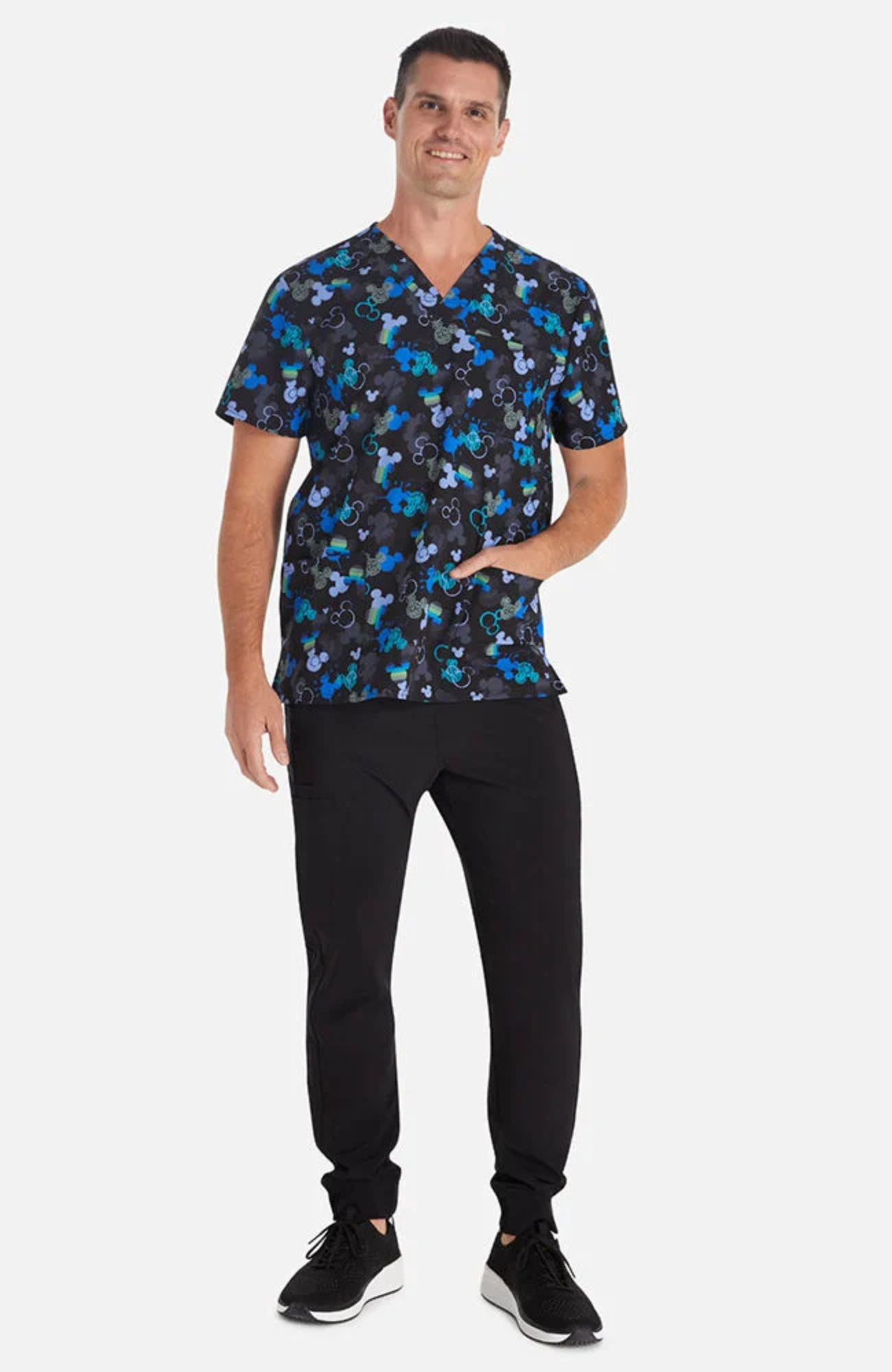 Estampado caballeros doodle icónico estilo Disney con la blusa médica Doodle Ears para hombre.