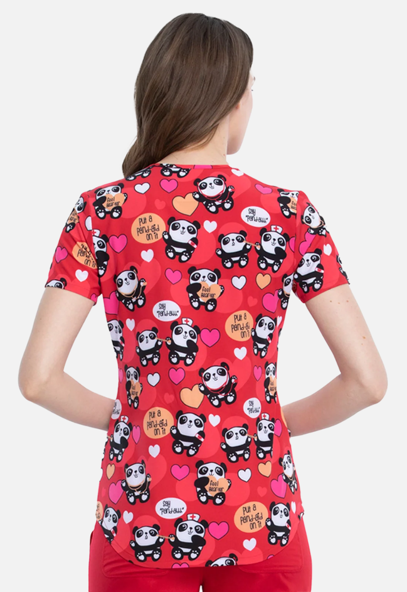 Estampado dama panda con una variedad de colores y estampados alegres para elegir, podrás estar cómoda y destacar durante tu jornada laboral. Cuello en V colección de Cherokee. Tiene dos bolsillos frontales y aberturas laterales para mayor comodidad.