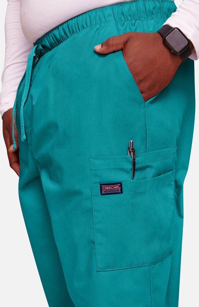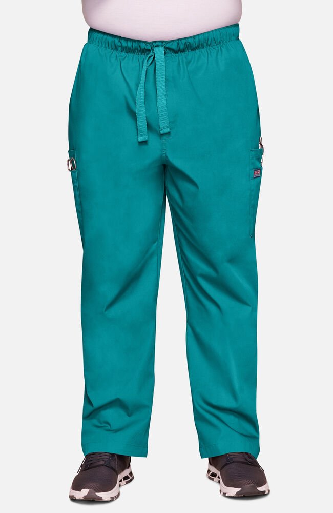 Pantalón caballeros turquesa siete bolsillos, una tela suave y duradera y un estilo simple pero elegante hacen del pantalón médico utilitario para hombre una prenda básica del uniforme.