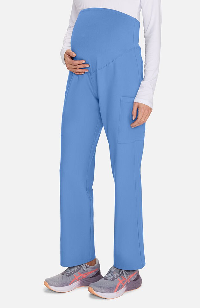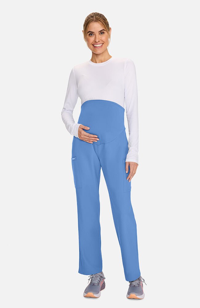 Cinco bolsillos y una presilla para tijeras o bolígrafo te ayudan a mantenerte organizado en todo momento. Cuenta con una pretina de punto acanalado que se adapta al crecimiento de tu barriga, brindándote una sujeción suave turno tras turno.