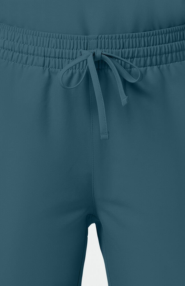 Su tejido avanzado incorpora tratamiento antibacteriano de iones de plata, manteniendo la frescura e higiene durante toda la jornada laboral. La cintura con media goma trasera y el cordón de ajuste permiten una sujeción personalizada. Además, cuenta con cinco bolsillos para mayor practicidad.